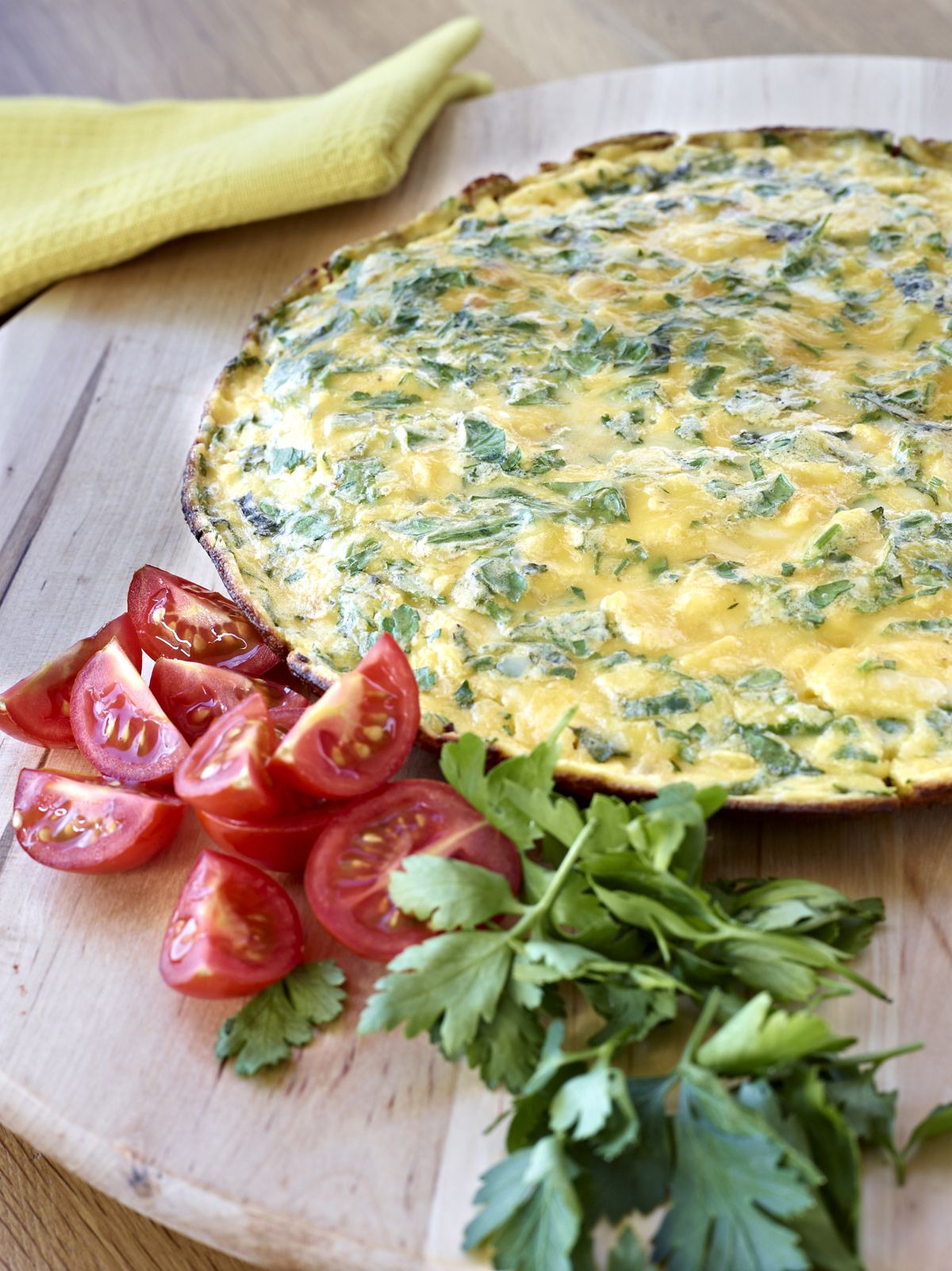 Bir karıştırma kabına Kilicarslan Yumurtalar'ı kırın. Üzerine un ve sütü ilave edip iyice çırpın. Daha sonra yeşillikleri, peynirleri, kaya tuzu ve karabiberi ekleyip tekrar çırpın. Yapışmaz bir tavada tereyağını eritin ve üzerine hazır olan omleti ekleyin. Altını kısarak önlü arkalı yahut da kapağını kapatarak tek yönlü olarak pişirip servis edin.